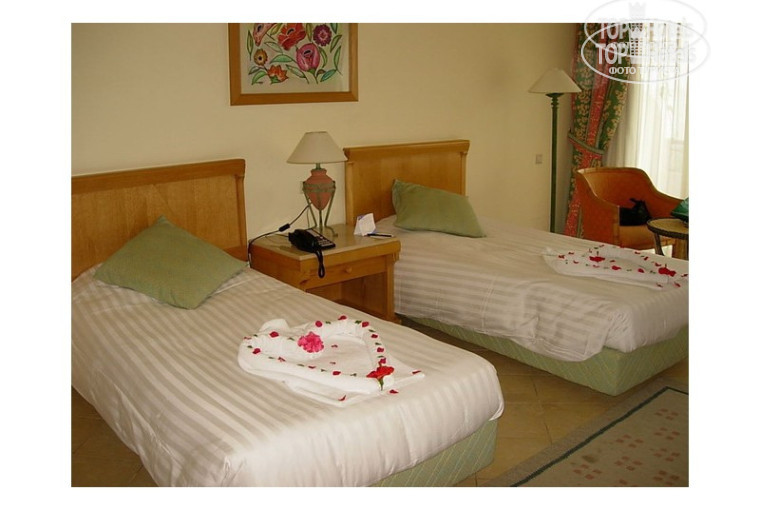 В номерах нет халатов, как пишут в некоторых каталогах, но это ничуть не омрачает пребывание в отеле! Убирают каждый день, постели тоже меняют ежедневно. Есть сейф; маленький чайник, а к нему две чашки, кофе, чай и сливки; есть холодильник, в который вы можете спокойно положить принесенные на полдник из ресторана мандарины или апельсины. По телевизору можно найти Первый канал и РТР, но намного приятней слушать арабскую музыку и смотреть фильмы на английском.