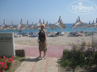 Отдыхаем в Турции7раз.Нравиться отдыхать в разных отелях.Люсида оказалась на четвертом месте.Отдыхали от тур фирмы Анех тур.Долетели,встретили,довезли-всё замечательно! Прибыли в отель в10 утра.Очень удивило(нас было две семейные пары) нас встретила администратор по имени Наташа.-помогла заполнить документы,проводила В ресторан.Мы позавтракали и нам сразу предложили небольшие комнаты без болконов.На следующий день мы перешли в болшие комнаты с балконами.В комнате всё было исправно ,убиралось отлично,принадлежности все были.Територия маленькая ухоженная-отличная.Шикарная набережная вдоль моря.Вечрами все там прогуливаются. Море замечательное,чистое.С утра штиль-с обеда небольшая волна.Вход в море-галька,нужна спец обувь. пирса нет.Лежаки занимали в 7 утра,в 10 все были заняты. Питание нормальное-(овощи.фрукты в изобилии,сладости,рыба,мясо в основном курица.Столы свободные всегда,официанты молодцы! Аниматоры старались,зазывали на гимнастику,волейбол.С детьми занимались-просто молодцы!Отель хорош для семейного отдыха.Молодежи будет скучно!Отдых мне понравился,но не понравилось в ресторане можно выпить только вино,если вы захотели выпить пиво или что то покрепче нужно выйти к бару взять спиртное и идти в ресторан.кофе чай только через бармена и в бумажные стаканчики.Это конечно мелочи,но ведь есть с чем сравнивать! КСТАТИ ПАРА КОТОРАЯ ОТДЫХАЛА С НАМИ ПЕВЫЙ РАЗ В тУРЦИИ ОСТАЛАСЬ ОЧЕНЬ ДОВОЛЬНА!