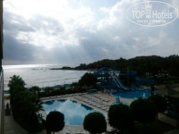 Отличный современный отель заселение прошло быстро вместо номера стандарт нам предложили номер люкс за небольшую доплату и видом на море Убирали в номере каждый день без проблем Море в двух шагах от корпуса лежаков хватало всем некоторые умудрились занимать по несколько и на солнце и в тени сауна бесплатно полотенца пляжные бесплатно сейф в номере бесплатно Персонал вежливый как в барах так и в отеле Если возникали проблемы с интернетом то быстро помогали Питание отличное каждый день было и мясо и рыба и никаких очередей нигде В барах наливают без ограничений только улыбаются не верьте что плохо кормят интересно недовольные дома чем питаются икрой красной что-ли На рынок ходили несколько раз По средам выездной рынок где можно купить фрукты и подарки и вещи Что нам нужно мы все купили В ресторане из фруктов предлагали яблоки красные и зеленые .груши .сливы .виноград.мандарины апельсины и грейпфрута рынке.конечно фруктов гораздо больше и цены доступные море теплое чистое и заход хороший Отдых удался Спасибо персоналу отеля за отличный прием и отличный отдых!