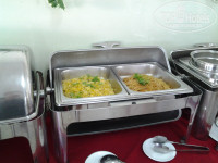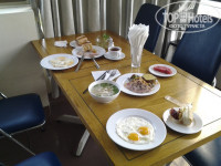 Завтраки: фото прилагаю, судите сами. Из мясного была свинина, курица, утка, индейка, фрикадельки, ветчина не соевая двух видов. Лотки с пищей никогда не пустовали. Мы приходили в 6-30, к началу работы ресторанчика, чтобы пораньше на пляж. Русские дамочки делали бутерброды из багета и ветчины, много делали, неприлично много, выносили открыто и никто им замечаний не делал. Грешен, под конец тоже стал брать закусь к рому (2-3 банана).