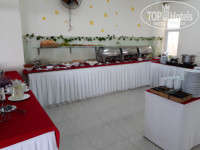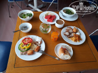 Завтраки в отеле были скромными, но съедобными. Обязательно - суп фо, омлет, лапша, рис, какие-нибудь котлетки, мелко рубленная курица, 2-3 разновидности местных колбас, огурцы, помидоры, болгарский перец 3 цветов, сок типа «Юпи», чай и кофе со сгущенкой, мелко нарубленные арбузы, и ещё какой-то условно съедобный зеленый фрукт типа неспелой гуавы. Выпечки не было, только хлеб с маслом. Даже в выходные, когда приезжала толпа китайцев, всем всего хватало. Главное – разминуться с китайцами во времени.