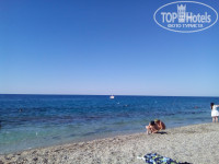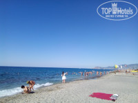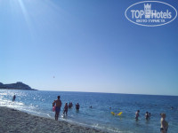 - пляж плохой, галька, скальные плиты на разных уровнях при заходе в воду. все резали ноги во время захода. песок ближе к бич бару грязный, в окурках.