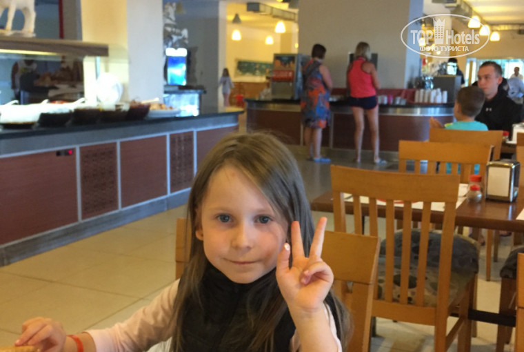 Питание и напитки: завтрак с 07 до 09, яйца вареные в крутую и в смятку, амлет, глазунья, амлет в виде рулета, пару видов сыров, искусственная колбаса, отвратительные сосиски, каша рисовая, зелень, сухие хлопья. Стоит семь больших чаш с белой массой, что там? Ни чего не подписано. Блины пекли всего два раза за семь дней. Напитки из автомата порошковые, не пили и ребенку не давали, кофе из автомата нормальный, вода бутилированная в холодильниках при выходе из столовой. Обед с 12:30 до 14:00 выбор блюд очень скудный, к грилю выстраиваются очереди, подают – куру, индейку, скумбрию, печень, полуфабрикаты замороженные из мяса птицы и это не все зразу, а что то одно. Мясо баранины, говядины за весь отпуск я не видел ни разу. Ужин с 19:00 до 21:00 не сильно отличается от обеда, сладкий стол большой, но изделия однотипные и не вкусные. На обед и ужин лучше приходить к открытию, иначе будут трудности с поиском места за столом. Из алкоголя в течении обеда и ужина вино красное и белое по бокалам (не плохое), пиво. Посуды не хватает, вино разливают по пластиковым стаканам, тарелки на 70% со сколами. Один раз давали роллы))) в рис завернули утрешнюю искусственную сосиску, выстроилась очередь, выдавали лимитировано, издеваются над нашим братом.. Фрукты - арбуз, яблоки и апельсины. Один раз давали мандарины. И это в пик сезона на фрукты в Турции!!!