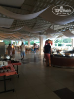 Территория: по цифрам не маленькая, по факту не большая, утыканная домиками, зеленая, тихий бассейн, бассейн с горками (горки две, работают по расписанию). Мини зоопарк (гуси, кролики, попугаи..), один стол для тенниса, шахматы большие, площадка для волейбола. Один основной ресторан, бар у сцены, снек бар, лобби бар не работал. Мини клуб, две качели и горка. Фитнес – небольшая комната у лобби бара на втором этаже. У входа в ресторан магазин сувениров, текстиль, пляжные принадлежности, сумки.