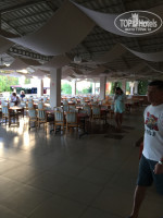 В снек баре в течении всего дня перекусы, лепешки пекут, картоха фри, сендвичи. На столах срач, столы не убирают и не вытирают, бар у сцены такая же история, столы грязные с использованной посудой. Алкоголь только в баре у сцены, пиво, вино, ракы, водка, джин, безалкогольные напитки пепси, фанта, спрайт. В один из вечеров как обычно беру джин с лаймом, выпиваю и понимаю что пью воду, иду в бар, возмущаюсь, турки бармены смеются мне в лицо и говорят что я пьяный)) В общем алкоголь периодически бодяжат.