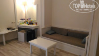 Номер нам сразу понравился. Достаточно большой. Две комнаты. В одной комнате большая двухспальная кровать. Шкаф, две тумбочки, детская кроватка. Вторая комната с выходом на балкон, с диванчиком, креслом, тумбой под телевизор, холодильником, шкафом, туалетным и журнальным столиком. Ванная комната - унитаз, раковина, душевая. По состоянию я особо не придирался, в целом все хорошо, все работает, ничего не ломалось. Да, есть потертости на мебели, сколы, но я не присматривался. На полу во всех комнатах - ламинат. На балконе - столик и два стула + сушилка для белья. Понравилось как организовано освещение в номере - выключатели в комнатах дублировались для того, чтобы не вставать с кровати и не выключать свет перед сном. Единственный минус номеров - достаточно хорошая слышимость, но лично мне это не мешало, спалось отлично. Убираются каждый день, полотенец надавали целую кучу.