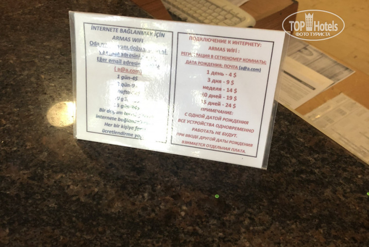 Интернет : платный , работал без сбоев,ловил у бассейна около моря .