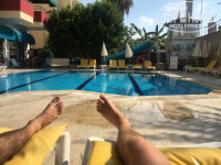 Хочу начать с того, что в целом отель не плохой. Руководитель там "не очень", которого окрестили "КОБЗОНОМ" потому что он носит парик :-). Еда очень однообразна, но выжить можно, я был 17 дней, и где то дней через 9 мне очень все надоело и кушал я в местных кафе, не дорого, и реально мясо :-). В отеле наливают по 1 стакану и очень мало, взять например отель Астор Бич, который находится в 100 метрах от этого отеля и является 3*, там дают по 4 стакана в 1 руки и наливают до края. Мне доводилось там быть и не 1 раз у друзей. Для этого отеля, номера хороший, в отеле не грязно, убирают. Интернет есть, как за деньги так и бесплатно, пляж оставляет желать лучшего, но там вся линейка такая. Персонал приветливый и милый, если к ним также, были там и звёзды, которые кричали, устраивали драки, но это от самих людей зависит, не нужно было ехать в такой отель, отзывы которые тут есть правдивы. Главное кто за чем едет. Я приехал за солнцем, морем и никак к отелю привязываться не хотел, мне достаточно было приходить спать и мыться, если же вы хотите зависеть от отеля и вам важна инфраструктура и различные мелочи, то этот отель не для вас. Едьте в 5*, я походил там по отелям рядом, и мне есть с чем сравнить. Отель твёрдо заслуживает 3*, но никак не 4*.