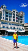 В отеле 70 % немцев,но нас это не напрягало,очень спокойно,без "Тагил рулит".Уборка каждый день,Питание хорошее ,но не было гриля (отель был заселен на 60%).До моря 5 минут пешком,пляж чистый,море сказочное.В баре у аквапарка чудный бар где наливают Бэйлис и Кампари со льдом.Отель для спокойного отдыха без тусовок.