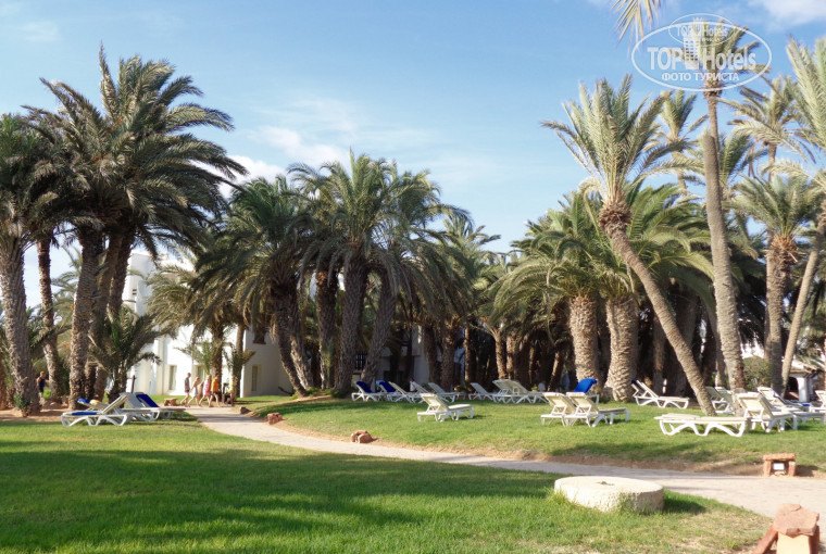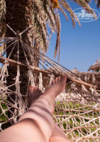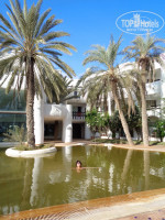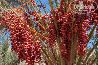 Территория очень зеленая, повсюду пальмы с гроздьями фиников, зеленая трава, оливковые деревья. Есть 2 бассейна, обычный и термальный. На территории очень много лежаков, хочешь возлегай у бассейнов, хочешь на самом пляже у моря, хочешь в пальмовой роще под финиками. Под пальмами есть еще и гамаки.