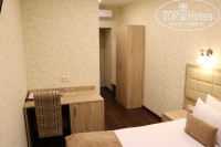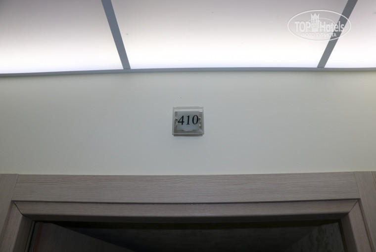 Отель расположен в жилом здании, стойка ресепшн и меньшая половина номеров на втором этаже, большая половина на четвертом. Нам достался как раз номер 410, четвертый этаж. Ресторан отеля, где сервируют завтраки расположен в подвале и является обычной кафешкой в которой либо по договоренности либо ввиду общего владения бизнесом вам и предоставят питание.