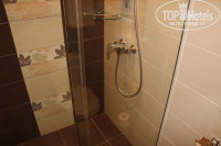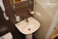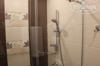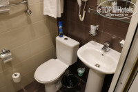 Санузел небольшой. Душевая кабина, раковина и унитаз. Присутствовали шампуни, мыло, полотенца.