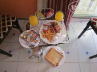 Прилетели в семь часов - двадцать минут и мы в отеле. Заселили сразу, номер был готов. Маленький, чистый, отличный матрас и белое белье, полотенца свежие и пушистые.. В общем, нас все устроило. Жили на третьем этаже - шум только с улицы, но это неизбежно. Кондиционер шумный, но рабочий. Пользовались редко - жары не было. Завтраки вполне себе достойные. Сосиски, яйца, колбаса съедобная, картофель фри, фрукты и булочки с джемом. Нам хватало. Однажды, видимо, других туристов не было - нам завтрак принесли в номер - фото прилагаю. Как обычно, краснели за соотечественников - вновь прибывшие снесли все, что было на свои тарелки -и унесли в номер.. Пришлось ждать обновления меню.. Вроде мелочь, но как же стыдно - как будто на Родине голодают..