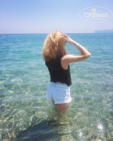 До моря идти минут 10-15.пляж с большими камнями,ужасно больно ногам,не очень чистая вода,так что лучше ходите с утра.