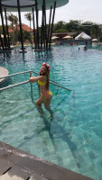 Отдыхали с мужем в июне 2017 года. Ну я всегда в любые страны беру с собой сувениры из России. Особого восторга я не заметила, но так как заселение в обед, а мы приехали утром, то нам предложили номер помыться с дороги. Через часа 1.5 нам дали номер. Разместили быстро, но номер мне не понравился, так как был крайний с бассейном и у тропинки где ходили люди и дверь в смежный номер. Ночевали там ночь. На следующий день предложили другой номер всё так, как я хотела... без смежных дверей прекрасный выход в бассейн и никаких китайцев соседей. В номере есть все и даже больше: зубные щетки, паста, расчески, соль для ванны, зубная нить....Биде, что очень важно для меня, кофе, чай, фонарик, зонтик, сейф. Номер шикарный. Территория отеля утопает в зелени. Собственный пляж очень большой плюс. И сразу о минусах. Отель практикует экскурсии для китайцев из других отелей. И почему то необдуманно на пляже ОДИН туалет. ДА ДА!! на весь пляж один туалет. До номера идти далековато, до рецепшена тоже..., да и в купальнике не пойдешь! В этом туалете 2 унитаза и одна переодевалка. Так вот туристы-китайцы низачто вас не пропустят. Я говорю не об отдыхающих этого отеля, а именно о тех кого привозят на экскурсию в отель. Создается громадная очередь из китайцев. Знаю, что некультурно тут писать и грубо, но одну особу я прям за руку выводила, так как она не посчитала нужным занять очередь... ну и ругала по-русски. Вот поэтому из за таких грубиянок нашего брата не любят..... к слову о чаевых. Мы их оставляли исправно и я даже просила мне крутили фигуры из полотенец..... другие русские почему то сказали ,, мы не оставляем ни в отеле ни в кафе,, это опять к тому, что русских не любят. Ещё из минусов, то что не меняют столовые приборы при смене блюд и нет скатертей. В 5* это должно быть. По кухне еды нам хватало, готовят нормально, фруктов хватало...Правда случился нонсанс лежал телефон на столе и официант облил их кофе.(кофе мы не заказывали_)... потом бегал сушил феном..., ну да ладно ... приехав в Россию купили новый... жаловаться не стали. Брали мопед на прокат, объездили всё вокруг и даже ездили несколько раз в Куту шили мне куртку на заказ из питона. Рядом есть Бали коллекшн ТЦ честно даже не ходила. Ездили ужинать несколько раз в Джимбаран. Обязательно смотрите внимаельно чеки, считайте количество креветок, когда взвешиваете одно количество, а приносят другое в готовом виде. В магазинах просчитывайте всё в уме, особенно когда набираете много товара, например пиво, чипсы, орешки. Пикают, пикают и типа итоговую высвечивают на 300руб на наши.... ну воздух продают... ну Вы поняли....Ну это я уже отклонилась от отзыва. Отель рекомендую, берите лучше с выходом в бассейн это очень здорово можно хоть ночью купаться. Очень дружелюбная страна..... всегда подскажут на ломаном английском как ехать.... Очень доброжелательная страна.