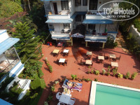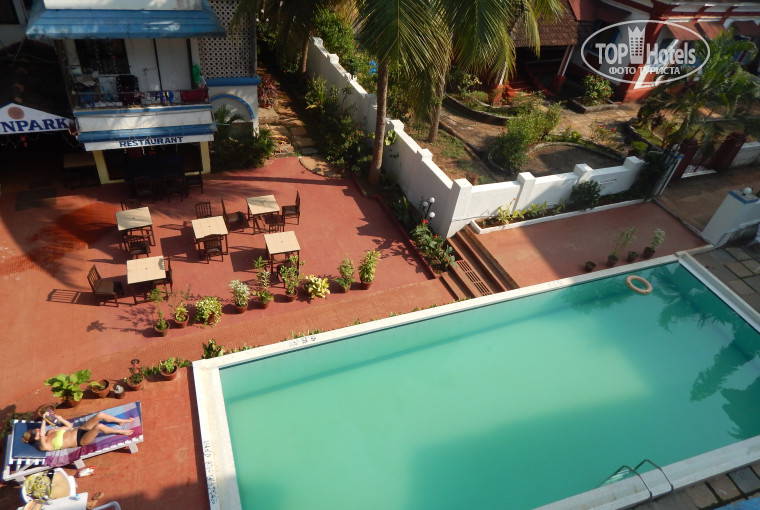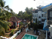 Отдыхали в данном отеле в декабре 2017 года. В целом отелем остались довольны, все отзывы о нем правдивы. Сам отель имеет небольшую чистенькую территорию. Вокруг него много зелени, пальм, в целом создается впечатление об уютном зеленом уголке. Бассейн глубокий, чистый, как мне показалось. Поплавать в нем в жару - одно удовольствие. Отель находится в 5-7 минутах хотьбы от пляжа. Если выйти на главную дорогу - немного влево, перейти дорогу возле кафе "Бага дек" и по первой же улочке идти к морю. На улочке много магазинчиков и кафе. Если по ходу движения свернуть не к лав шейку, а влево, то к морю вы выйдете по прекрасной пальмовой аллее, идущей от виллы "Гоеза" прямо к морю (по ней ходить можно всем). Номера в отеле в основном двух-комнатные, есть со свежим ремонтом, есть "подуставшие". В номере у нас была гостиная с диванчиком, креслом, телевизором, спальня со шкафом и кроватью, кухонный уголок с холодильником. Ванная комната стандартная для Гоа - душ из стены,шторка, унитаз, умывальник, зеркало. В комнатах по вентилятору , а в спальне еще новый кондер, который мы не заказывали. Завтраки в отеле лучше, чем во многих двойках и даже тройках - чай (причем отдельно есть вкуснейший чай с молоком), кофе, горячее молоко, тосты в неограниченном количестве, яичница или омлет на ваш выбор (только надо заказать), 1 индийское блюдо (картошка, горох, рис и т.п.), а также джем двух видов и масло. Нам хватало. Персонал отеля уборкой в номерах не заморачивается, если не оставите ключ - и не вспомнит о вас. Мы убирали сами, белье один раз сняли и отнесли на ресепшен и нам без проблем поменяли, выдали также еще мыло и туалетную бумагу. Замок на дверь покупали в супермаркете. Двери входят наружу, на улочку, поэтому лишняя предосторожность не помешает. Все хранили в чемодане под кодовым замком плюс замок на двери. О случаях воровства в отеле не слышали. Персонал в отеле услужливый, все наши просьбы выполняли сразу. Плюсов у отеля много, теперь о минусах. Отель находится в трех минутах хотьбы от главной дороги - чемоданы при приезде и особенно при отъезде тащить к дороге тяжело. Зато правда по ночам не слышно грохота главной дороги. Отель не такой уж тихий, как мы надеялись и выбирали по этому критерию. Во-первых, у бассейна шумновато не иногда, а через день, любят люди посидеть в местном ресторанчике. Правда в 11 все стихает, все уходят по другим веселым местам Гоа, а с часу ночи волнами (в час, два, три) начинается возвращение постояльцев с криками, смехом и т.д. Кроме того, на заднюю часть основного здания выходят бар и бассейн отеля "Камелот", где музыка и шум могут быть целый день. Соседи по балконам также привезли с собой и постоянно включали свою музыку. Может, нам не очень повезло с номером, но поспать в полуденные часы, а иногда и ночью удавалось не всегда. На экскурсии не ездили, так как не первый раз в Гоа, съездили на такси по южные пляжи - очень понравились Уторда, Кавелоссим. Отдых в Гоа - это каждый раз сказка. Вернулись бы в этот отель - из-за шума нет, а все остальное там нормально для непритязательных туристов.