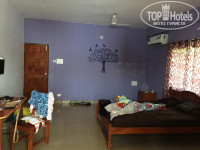 Что еще могу сказать про отель? Номера мы бронировали AC ROOM (для Annexure возможен или такой вариант или более дорогой - 1 BR APARTMENT). Прибыли в отель мы примерно в 10 утра. Сначала ехали на большом автобусе, потом, немного не доезжая до отеля, нас высадили на перекрестке и за нами приехала машина из отеля - это обычное дело в Гоа, поскольку большие автобусы не всегда могут проехать так близко к побережью. Менеджер на ресепшен Ави (потом познакомились с ним получше, хороший парень) предложил нам завтрак и сказал, что номер нужно подождать час, однако уже минут через 30 нас пригласили в номер (а вообще заселение с 12). Номер дали большой, с балконом, по меркам Индии чистый, кондиционер и телек с приставкой работали, водонагреватель и холодильник тоже. Окно выходило на дорогу, балкон в боковой проход, на стену Naga Cottages. Двери на балкон просевшие, чтобы их открыть нужно было применить силу))). Чайника в номере не было, но нам он был не нужен.Попросили пульт от кондиционера, принесли через 5 минут. Сам номер темноватый (фиолетовые стены), пол плитка, состояние санузла визуально на 4 с минусом, но всё было исправно и ничего за время нашего прибывания не сломалось. Полотенца, как и везде в Гоа, белыми были очень давно. А вот с постельным бельём индусы придумали хитрый ход, оно оказалось приятного шоколадного цвета))). Платяной шкаф был железный ахахах, в нем имелся встроенный сейф, куда спокойно помещалась небольшая дамская сумка с документами и деньгами.