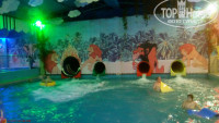 Покупались, вернее, дочка с горок на коврике и ватрушке, один бас был закрыт (с горкой, на к-й можно вчетвером одновременно съехать). Для меня было очень темно внутри, не хватало освещения и прохладно. Мамы, присматривающие за детьми, кутались в халаты и полотенца.