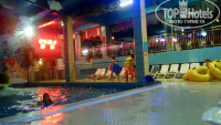 Снова в сам аквапарк с горок, хотели погреться в бас для малышей. Спасатель не пустила, подумали потому, что дочь уже первоклашка, а не малышка. Оказалось, нет. Кто-то из малышей наложил в воду, завтра будут дезинфицировать. Пошли греться в тёплый бас самый крайний у стены, над ним растяжка с героями мульта Мадагаскар. Оттуда нас и попросили. Время быстро пролетело, не накупались, конечно.