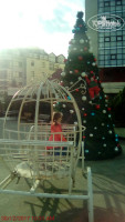 На улице программа для детей, Дед Мороз (в правильной русской шубе, а не Санта в красном брючном костюме), Снегурочка, аниматоры угощали мандаринами и конфетами.