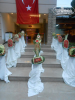 Питание: вкусно, но однообразно) устраивали рыбные дни- достойно.. В общем-то голодными не останетесь. Персонал в столовой как пчелки работают- стараются своевременно убирать столы и даже с песнями)) Бармены... а вот бармены народ интересный и одного хотелось просто стукнуть чем нибудь посильнее , чтобы не хамил ))), но про него пишут все(может он так искал славу?- это чудаковатой бармен с жиденьким хвостиком,, до чего же чудной парень !) А в общем не плохо.))Про спиртное можно сказать только одно- оно все турецкое и импортного нет даже за доп плату Мы о себе позаботились) - спиртное у нас было из дьюти-фри, да и магазинчик рядом с отелем в помощь!