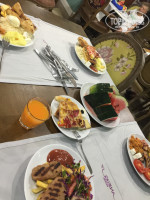 Куча салатов,куча гарниров,различное мясо,фруктов,и море сладостей!!!*_*