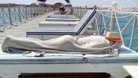 Ми відпочивали на початку лютого ( не сезон) тому купатися можна було лише до 17:00, далі не можна було купатися ні в морі ні в басейнах (бо в них на ніч додавали хлору, але то не відчувалося на наступний день, фільтри у басейні хороші і змінювалися доволі часто за день). Територія готелю надзвичайно гарна, дорога до моря складала метрів 800 і була дуже приємною бо по території багато басейнів, три коктейльні бари, аквапарк, міні зоопарк. Аквапар - просто чудо, тільки ми там мокли двічі в день :)