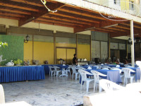 Столовая, тут же рядом с бассейном, просто под навесом, несколько столов, бар тут же.