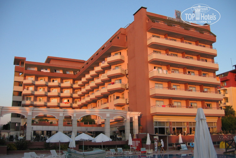 Позавчера(17 октября) вернулись из этого отеля. Отдохнули просто потрясающе! :))) Отель хороший, территория небольшая, но уютная! Нам и без купюр в паспорте дали прекрасный номер из которого открывался вид и на горы и море! Кормили вкусно и разнообразно! Что хочется отметить, что отдыхают в этом отеле в основном русские, иностранцев как-то мало, да и персонал в основном по русски и говорит и понимает, поэтому попрактиковаться в иностранном языке трудно :))) На территории отеля в определенные часы работают водные горки, так что в перерывах между морем можно весело провести время гоняя с них!! Пляж песок-галька, немного неудобно входить в море, но мы порой ходили на соседние пляжи купаться, там немного пройти и галька становится более мелкой. Что касается анимации, то в то время когда отдыхали мы, ее почти не было видно...и вообще по сравнению соседними отелями, наш отель нам показался самым спокойным:)))) так что согласимся с теми, кто писал, что он подходит больше для семейного отдыха!! Просто мы были лишь недельку, поэтому совсем не парились по этому поводу, как-то не не пришлось скучать, а если две недели, то наверное скучновато будет...Опять же октябрь все же уже конец сезона, может дело было в этом.. Да и сам поселок в котором находится отель состоит почти только из одних отелей, да двух базаров. Баров и дискотек мы там не видели, поэтому кто ищет тусовку лучше ехать ближе к Алании или в саму Аланию. Но повторюсь, что для нас это не было пунктиком, а поэтому и отдых прошел отлично! Чего и Вам желаем!! :))))