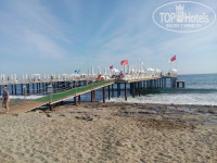 Дальше о пляже))) Дорога до пляжа метров сто,пляж собственный, лежаков хватает всем. Есть бар на пляже. Детская площадка тоже для деток есть. Море в мае было 21 градус,спокойно купались с ребёнком. Но из за природной плиты, вход в море не очень удобный( это природная особенность этой местности и отель в этом не виноват), но немного пройти вправо есть хороший пологий вход.