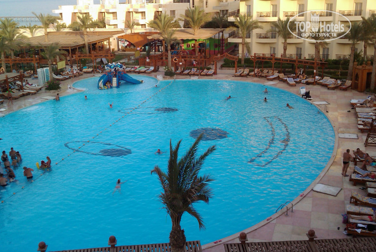 Отель красивый.Территория большая,много зелени.Для детей хорошие детские площадки.Детская комната работает по два часа- утром и после тихого часа,закрываются в 17:00.Детская дискотека-каждый день одно и тоже.Для взрослых разнообразие получше.Номер мы получили хороший с огромной терассой,видом на море и бассейн,но за 20$ на ресепшен сразу же при заселении.Лучшие этажи в отеле 3,4,5.В номере есть минусы обшарпанные двери,некачественный ремонт ванной(держатель для душа держался на соплях,плитка положена тяп-ляп),но это все мелочи которые отдых и настроение не портят.Уборка в номере,смена полотенец и смена постельного белья была регулярной.Чаевые оставляли всего один раз за уборку 10 фунтов(2$).Сервис не навязчивый......когда нужен официант,чтобы убрал со стола или принес столовые приборы Вы его не дождетесь,пока сами за ним не сбегаете и не приведете к столику.Официанта по имени Эхап,попросила выдать мне столовы приборы,на что мне он ответил - возьми сама и ушел.Главный ресторан по чистоте напоминает заводскую столовку советских времен.Столов катострофически не хватает,как и лежаков на пляже и у бассейнов,на территорию отеля загорать и купаться приходят с двух соседних отелей!!!!!Поэтому лежаки приходилось занимать в 7 часов утра(у главного бассейна в это время половина лежаков уже занята).В море до глубины идти метров 150-200,а так глубина по колено,вода мутная,вход в море по бетонным ступенькам.Еда была разнообразной(не только яйца и рис),голодными никогда не оставались при том,что с нами отдыхал ребенок 3-х лет.Но тарелки и столовые приборы не всегда были чистыми(некоторые тарелки не моют,а просто протирают.На тарелках остаются жирные разводы).Бумажные салфетки вообще редкость,а тканевые имеют не свежий вид.Хорошие соки у них только из пакетов,остальное разведенное ЮПИ.Кальян у них просто сказка,стоит 2$ - можете заказывать банан,персик,вишню и т.д.,но вкус всегда один и тот же!!!Про алкоголь в этой стране писать не буду,закупайтесь в дьютике.Большой минус- это вечное хамство и недовольство барменов по отношению ко ВСЕМ туристам (не только к русским).Особенно бармен Али возле бассейна с морской водой,около моря.Но если давать хороший бакшиш(чаевые),то они Вам даже принесут за столик Ваш заказ и пепельницу поменяют и стол протрут!Нам очень повезло мы только в последний день заметили в главном файе на барной стойке таракана,слава богу что не в первый!!!(может быть Вам тараканы не встретятся).Наш гид из ТЕЗ ТУРа Абдула просил в первый день на общем собрании по всем вопросам и проблемам с обслуживанием обращаться к ниму лично,что он решит все проблемы,главное запомнить имя человека с которым возникли проблемы.Но когда мы обратились к Абдуле по поводу хамства барменов и официантов,он не принял никаких мер.Очень понравилась экскурсия "Белое солнце пустыни" от ТЕЗ ТУРа,замечательная гид- экскурсовод Елена.Спасибо ей за интересно проведенный день.Когда я выбирала этот отель я не очень прислушивалась к отзывам отдыхающих и не верила,что в 5***** такое может быть!Для меня главное был хороший настрой на приятный отдых.Делайте выводы,приятного отдыха.