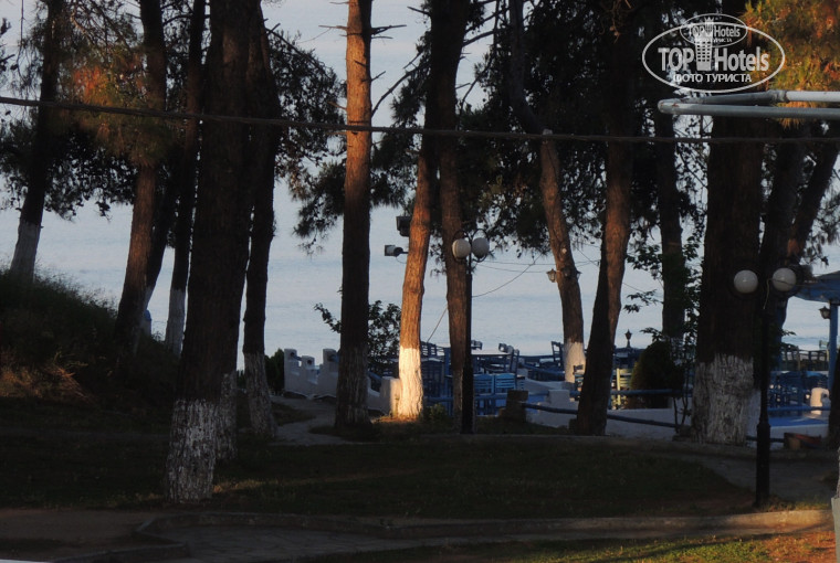 Вдоль всей пляжной линии есть променад до фонтана, а там начинается улочка с магазинчиками и кафе, ходили несколько раз. А в другую сторону от отеля жилой квартал, но там очень тихо и безлюдно, такое ощущение, что все греки уехали и дома все закрыты. В общем скучновато как-то. Сказать ,что шикарный отель - не могу, но вполне приличный, скорее 3*+, не 4* Плюс за питание. Рекомендую.