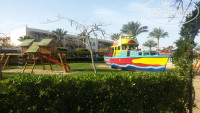 В номере был кофейный и чайный набор . Корзина с фруктами . Воду приносили каждый день . Колу , спрайт и соки - через день. Холодильник работал хорошо , сейф - бесплатный , плазменный телевизор. Очень красивая , большая территория , много зелени , цветов . Купаться можно в лагуне и в море , вода была теплая , ветра не было , погода отличная.