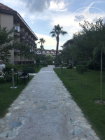 До пляжа не спеша можно дойти минут за 5, около пляжа есть бар, но мы туда не заходили никогда, на пляже женщина делает турецкие лепешки с сыром, с мясом, с картошкой, и шоколадом, печет она на 3 отеля, очень вкусные.