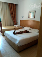 Номер стандартный: двух спальная кровать и односпальная, телевизор, шкаф, зеркало, тумбочки. Не новое конечно но все было крепенькое. У нас все работало (холодильник, телевизор, кондиционер и фен), претензий не было.