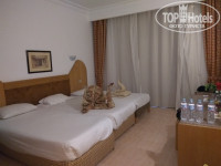 Это было 14 февраля и всем нам там подарили по розочке , миленько )) . Наконец - то снова египтский all - inclusive ! Восторг и эйфория ! Несколько раз подходили спрашивали - не принести ли чего - то попить . Но мы ещё и сами не знали , чего нам принести - ходили сами на разведку , сами и приносили . В 9 снова пошли на ресепшен - сказали , что немного подождать и будет готов номер . Потом позвали и портье сказал , что его друг подготовил очень хороший номер . А дополнительную кровать сейчас принесут . Ну - ну , посмотрим , что за номер . Если GR обещала подготовить номер в соответствии с пожеланиями , да ещё и " друг " портье ( там , кстати , весь персонал называет коллег " мой друг " ) - это должно быть что - то невероятное ))) Bell boy забрал багаж - заселили нас в main building , сразу за главным рестораном . Номер 4221 , на 2-м этаже . Я просила номер не слишком тесный для 3-х , чайный набор , солнечную сторону , балкон , вид , радующий глаз и чтоб не шумно ночью . Что первым бросилось в глаза - номер малюсенький . Куда же здесь ещё одну кровать вопхнуть ? Расстроилась ... Но идти менять - это ещё полдня убить на это , учитывая ещё и то , что заселили нас раньше . Потом вспомнила , что там все стандарты заявлены как 23 кв.м. - и перестала расстраиваться . Хотя в отзыве о сеседнем Sea World на фото номер побольше был , а здания одинаковые . Из остальных пожеланий было выполнено только то , что не требовало никаких усилий в организации этого - балконы есть во всех номерах , вид везде радовал глаз ( у нас был во внутренний дворик с бассейном ) , шумно ночью не было нигде . А так - солнце в наш номер не заглядывало никогда , что хорошо для лета , но так себе зимой . Чайника не было . Видимо , от GR мало что зависит . Ладно , распаковались , пошли гулять . Хорошо , что не стали в номере ждать , пока принесут кровать . Потому что её принесли часов через 8-10 посли обещанного " сейчас " И после того , как сказали об этом пойманному на этаже room boy . Ох уж эта египетская пунктуальность . Мама с малой спали , но у них война войной , но кровать надо поставить , перекрикиваясь из номера в коридор . Тумбочку убрал , кровати сдвинул вместе - так что можно и вчетвером поместиться , если с 2-мя детьми маленькими . Сантехника работала исправно . Фен - через раз . Закуток - душевая без шторки , но это не напрягало .На балконе стол , 2 стула и верёвка для сушки белья . Телевизор с плоским экраном , пульт работал , каналы на русском , арабском и украинском языках . Телевизор включали пару раз перед ужином . Мини - бар работал и замораживал всё в лёд . Номер посещали только на время сна и переодеться перед ужином , так что в итоге его лилипуткие размеры уже не смущали , а наоборот - казались вполне уютными :) Расположение номера чем - то напомнило одесский дворик , в котором я никогда не была , а видела только в кино и на фото - " колодец " здания , внизу бассейн . Иногда выпускала ребёнка туда - и всегда под присмотром с балкона . И можно с балкона звать домой , очень удобно . Само здание с очаровательной планировкой - пройти по коридору - попадёшь на верандочку с диваном и креслами , так же внизу , за бассейном в глубине ещё один , по 3-му этажу не гуляли . Через недельку мы узнали , что наш бассейн под балконом - с джакузи . Но мы так были заняты отдыхом , что покисли там один раз всего , и то недолго . Зато ребёнок там развлекался .