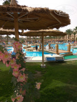 Еда . Кормили почти без перерыва и вкусно . Завтрак стандартный йогурты , подливки , омлеты и выпечка . Вкусные баклажаны , 1 вид съедобной колбасы и ничё так куриные сосиски . Блинчики не понравились ели вместо них шоколадную пасту . В обед и ужин гриль , мясо , рыба , индюшка , курица , креветки и множество гарниров . Креветки раз в неделю и выдают по 4 штучки , но можно подойти раз 5 . В обед молочные коктейли с разными фруктами . На ужин , если кто то уже стал капризулей , то можно пройтись в итальянско китайский а ля карт . Там понравилась прозрачная лапша , супчики , роллы и курка . Или рыба ? Всё понравилось . Кроме пиццы . Несколько раз попали на горы клубники на ужин и шоколадный фонтан . Напитки стандартные чай в пакетиках , кофе растворимый и из кофе машины , на барах всякие коктейли . Мороженое несколько дней не удавалось поесть из автомата текла вода . И вокруг бассейна ходит официант с тележкой и готовит коктейли не отходя от кассы . Перекусы возле бассейнов и на пляже . Мы раз попробовали - потом ходили в основной ресторан . На пляже на 2-м этаже ресторан с панорамным видом , но туда ещё не пускали . Поздний ужин - после вечернего шоу вполне можно перекусить ещё разок :) Народу почти никого , выбора конечно уже особого нет , но вполне отлично и есть всё необходимое . Есть детский уголок с 2-мя ТВ с мультиками и отдельно диетический . Официанты кружили в основном вокруг больших европейских семей . А у нас часто было , что гора нашей посуды не убиралась до самого окончания еды . Хотя , было , что возле а-ля карт кружил вокруг , кружил , и как только он решил , что мы доели хвать ! скатерть , и все тарелки забрал ))) Вот это оперативность ))) Кальян 3 долл. Вообще не понравился , видимо , в Египте с кальянами беда . Вот ни разу не попадала , чтоб было вкусно . Печалька ... Часто встречалась посуда со сколами и однажды в йогурте попался осколок . Хорошо , что у меня - а если бы ребёнок проглотил ?