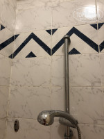 Душевой уголок жуть: грязь, отсутсвие полок для принадлежностей, вернее они может когда то и были, тк висело какое то ржавое старое крепление. Из слива в душевой неприятный запах. Противно было заходить туда. Дверь в санузел жутко скрипела и была с ярким чёрным пятном. Держатель для туалетной бумаги был погнутый, стены в грязных каплях. Вещи приходилось сушить на балконе.