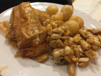 Еда в ресторане, не смотря на кризис, вкусная и разнообразная. Несколько видов различного мяса, овощей, фруктов.
