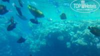 ПЛЯЖ. Ну, пляж - это самое главное, из-за чего возвращаешься в Египет снова и снова! Потрясающий коралловый риф, красоты которого можно лицезреть, спустившись в воду с пирса, глубина - 33 метра. Пирс, к слову, капитальный, деревянный, а не плавучий, как во многих отелях первой линии. Постоянно на пирсе дежурит спасатель, который неустанно бдит за порядком в воде. После обеда к пирсу приплывает большая рыба "Наполеон", а утром, в 7 часов ориентировочно, приплывает пара больших черепах. Там же, на пляже, можно купить дайверское погружение. Новичков инструктор сначала учит всем нюансам в бассейне, а потом уже совместно с учеником спускается/погружается с пирса. У берега очень мелко, такая лагуна позволяет спокойно плюхаться с детьми. Наш старший сын снорклил в маске в этой мелководной лагуне, рыб цветных предостаточно, чтобы ребенок был в восторге. Шезлонгов, полотенец всегда было в избытке, людей в отеле не много, в основном только граждане Украины и Казахстана, немного итальянцев и белорусов.