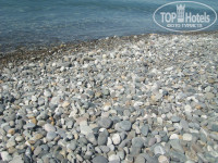 Территория комплекса большая, но все требует срочной реновации. Рядом пляж, мы, конечно, не купались, но ходить по таким валунам даже в весенней обуви сложно! Боюсь представить мам с малышами…. Только ноги ломать. Вход в море жуткий.