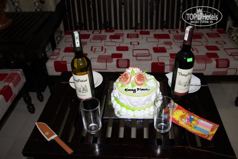 На мой юбилей муж предложил мне на выбор отдых во Вьетнаме или Таиланде. Я без раздумий выбрала уютный, тихий и домашний Вьетнам.В этом отеле мы уже в 3 раз.Заселение быстрое,персонал приветливый и улыбчивый.Номера убирают регулярно.На завтрак не останешься голодным,разнообразие блюд-фрукты,йогурты,суп фо,омлет,пельмени,сосиски,макароны,блинчики с мясом и без,рис с яйцом,салаты и прочее.При заселении от отеля в номере был презент- торт со свечками и бутылка вина.Торт превосходный вкусный, легкий и красивый.Также на день юбилея был презент,тоже торт со свечками и бутылка вина.Спасибо персоналу и администрации отеля.День рождение удалось.Так же съездили на две экскурсии на рыбалку и на водопад Дамбри г.Баолок. Впечатлений море и море позитива. Уезжать не хотелось.