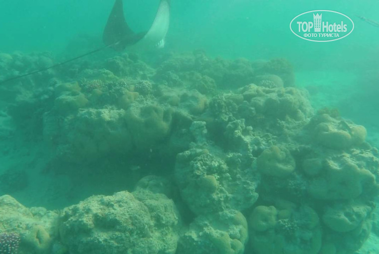 На завтрак, обед и ужин все ходят в главный ресторан, который размещается рядом с лобби со входом из территории. Что касается питания, то как всегда находятся те кто не доволен, особенно красочно это описывают в отзывах. Лично мне всего хватало. И мясо есть, и гарниры, и салаты, и десерты. Голодным и похудевшим вот точно невозможно уехать из этого отеля. Конечно, если каждый день накладывать всё подряд, то любое разнообразие станет монотонным. Есть даже те кто зависает на баре постоянно, а потом при расстройстве желудка готовы списать на питание. Достоинство отеля, конечно же, пляж и морская жизнь побережья. Кораллов и рыбак много-много смотреть не пересмотреть. Не нужно куда-то плавать далеко, достаточно спуститься с пирса и вокруг тебя будут кружиться стаи рыбИдеальное место для плавания с маской. Шезлонги, зонты, полотенца - без претензий. Пляжи вроде бы убираются регулярно, но мусор периодически виден. Есть нудистский уголок в шалашах для желающих загорать без полосок. Шоппинг - на территории есть несколько неплохих магазинов с приемлемыми ценами