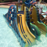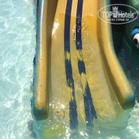 На территории отеля есть небольшой аквапарк на три горки и возле них детская зона тоже на три горки. Мы отдыхали с ребёнком 3х лет, который катался на горке для самых маленьких (небольшая горка на несколько съездов посреди детского бассейна). Сначала все было хорошо, но при очередном спуске ребёнок начал кричать, как резаный и схватился за ногу. Когда мы посмотрели, то ужаснулись: чуть дальше, чем до средины ногтя на под ноготь на большем пальце ноги было загнано краску. Тяжело представить, какой болью это сопровождалось(((. Мы сразу обратились на ресепшн своего отела, администратор Ольга сопроводила нас к штатному врачу, который попшикал обезбаливающим, обеззараживающим и забинтовал. На следующие утро по страховке нас забрали в в одну из клиник города, там извлекли основную (не всю часть краски), что соответственно тоже сопровождалось жуткими криками и соответственной болью. Прописали мазь, антибиотик и не мочить. Отмечу, что все затраты, включая транспортировку и медикаменты били предоставлены за счёт страховой, за что отдельный респект Укрфинстрах.