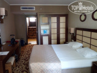 Что касается размещения. Мы отдыхали составом 3 взрослых и 1 ребенок 4-х лет. В связи с отказом отеля в предоставлении стандартного номера, нами был забронирован семейный номер. Если встать спиной к морю и смотреть на главный корпус, то наш номер располагался в левом крыле, окнами выходил на главный ресторан. Запахов от ресторана никаких не было и шума мы не слышали. Сам номер оказался довольно уютным, мы получили именно тот номер, который и хотели, и были очень рады,. увидев его! Уборка номера производилась ежедневно в наше отсутствие. И это несмотря на то, что дневной режим сна мы соблюдали безукоризненно. С одним нам не хотелось мириться - с пополнением мини-бара только водой )) Всё-таки в 5*** (а мы отдыхали 2 раза в пятерках, таких как амара клаб марин, акка антедон) мини-бар должен пополняться побогаче.