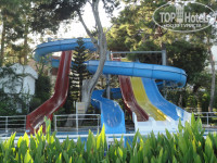 Пляж галечный. За время нашего пребывания в отеле, постоянно после обеда были волны, а до обеда штиль. Хороший пирс. Бар на пляже нам очень нравился. Там мы брали малышу горячий шоколад, а себе коктейли. Очень вкусный мохито! По вечерам там проводят различные развлекательные мероприятия, живая музыка, днем пенная вечеринка (бывает). Мы попали на лазерное шоу. Очень здорово! И взрослым и детям. Огромные мыльные пузыри и лазерные лучи - то, что привлекло детей разных возрастов. Вечерние представления посещали не всегда, кроме мини-диско. Там мы были каждый вечер. Детям очень нравилось, а нашему нравилось за всем наблюдать со стороны. Но перед началом мини-диско наш сорванец танцевал на сцене так, что мокрого его оттуда выводили ))) После мини-диско многие дети, кто с родителями, кто без, шли в мини-клуб смотреть мультфильмы под открытым небом, с поп-корном и водичкой. Днем в мини-клубе были пару раз. Один большой минус - все игрушки, находящиеся на улице, грязные, к ним даже противно было прикасаться. А внутрь мини-клуба мы не заходили.