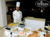 Еда для 4* прекрасная, сравниваю с DOMINA CORAL , завтрак - чудесные мягкие и твердые сыры, колбаса, шикарный йогурт трех видов, мюсли, зелень. Омлеты, блинчики с разным видом меда и джемами. Для мясоедов сосиски. Пюре, бобовая паста и тд.