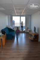 Отдыхали в отеле в апреле 2018(2 ночи), номера нормальные, без изысков, мебель требует замены, на диване невозможно спать...., в ванной слив засорен, вода долго не уходит, плохая шумоизоляция, были с 2мя детьми, очень все слышно, как за стенкой кто то громко кашляет, как за другой стенкой воду спускают, выбрали не удачное время, проходили какие то сборы, тренировки прямо в коридоре, ночные перебежки "слоников" до 1 - 2 ночи, под дверью, очень мешали спать детям, сначала заселили на первый этаж, но туда не так то просто попасть, надо подняться на лифте на второй этаж, а потом по лесенке спуститься на первый, чемоданы естественно на себе нести, так как Вам на ресепшене мило улыбнутся и покажут направление, куда идти, сразу попросили поменять, без проблем, переоформили за 3 минуты на второй этаж, брали семейный номер, две односпальные кровати стоят вместе и диван, на котором должны спать дети, но вот постельного белья не предусмотрено, пришлось топать на ресепшен, там извинились и выдали простынь, две подушки и одеяло, хорошо пошла с дочкой, помогла донести..... На ужин пошли в ресторан(5 этаж), шведский стол: взрослый - 16евро, ребенок с 4 лет - 8 евро. Выбор настолько мал, что мы остались голодными, попить только вода и чай, все остальное за доп. плату. В итоге решили ужинать вне отеля, нам подсказали замечательное местечко, кафе Грабли, цены приятные и вкусно, есть даже небольшое детское меню, но далеко от отеля, ездили на машине. Завтраки нормальные, можно подкрепиться, так как в отеле только ночевали, в бассейн не ходили, там много народу, постоянные занятия с тренерами....и не только гости отеля. Вид из номера красивый, но под окнами идет ремонт пешеходной дорожки, если смотреть в сторону города, то сначала видна куча строительного мусора с глиной и песком, а только на заднем плане виднеется сам Таллин. Как транзитный отель на одну ночь, может и подойдет, но для полноценного отдыха на выходные с детьми нет.