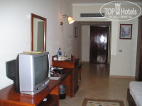 Мы были просто в шоке - он огромный! Просто очень огромный. Чистенький, убранный. Не было обшарпанности, как писали, все было на уровне. Офигенный балкон с видом на амфитеатр (мы от туда и смотрели все представления), бассейны и море. Так же виден был ресторан, так что мы всегда знали, много ли там народу)))). Мини-бар был пустой, но мы за 15 долларов заказали наполнение. Носильщик доставил наш чемодан, а так же спокойно объяснил нам, как пользоваться сейфом. Потом мы сразу пошли обедать.