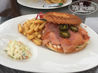 Есть бургер бар, работает 24 часа!!! мы любили там перекусить, вкусно. Также можно днем перекусить у бассейна. На самом пляже есть типа палатки с напитками, а бар у пляжа не совсем на пляже, но добежать можно. Правда, заходить в него в купальнике как то неудобно даже))